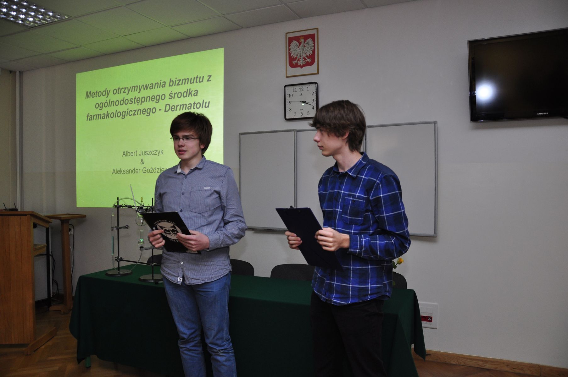 • Goździewski Aleksander, klasa 1bL, Juszczyk Albert, klasa 2bL – Poszukiwanie wydajnej metody otrzymywania bizmutu z ogólnodostępnych środków farmakologicznych